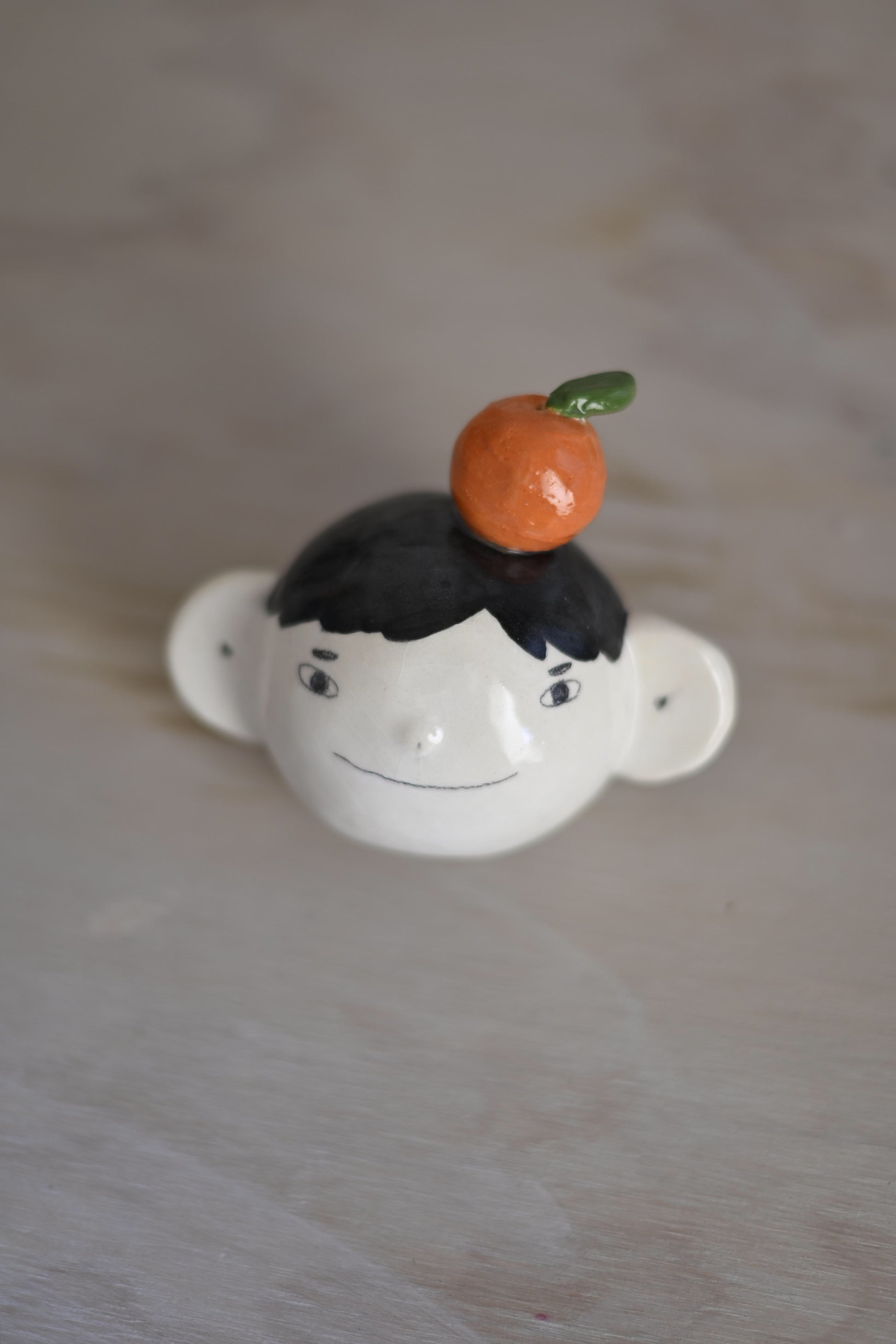 Cabeza decorativa de cerámica, engobes y esmalte.